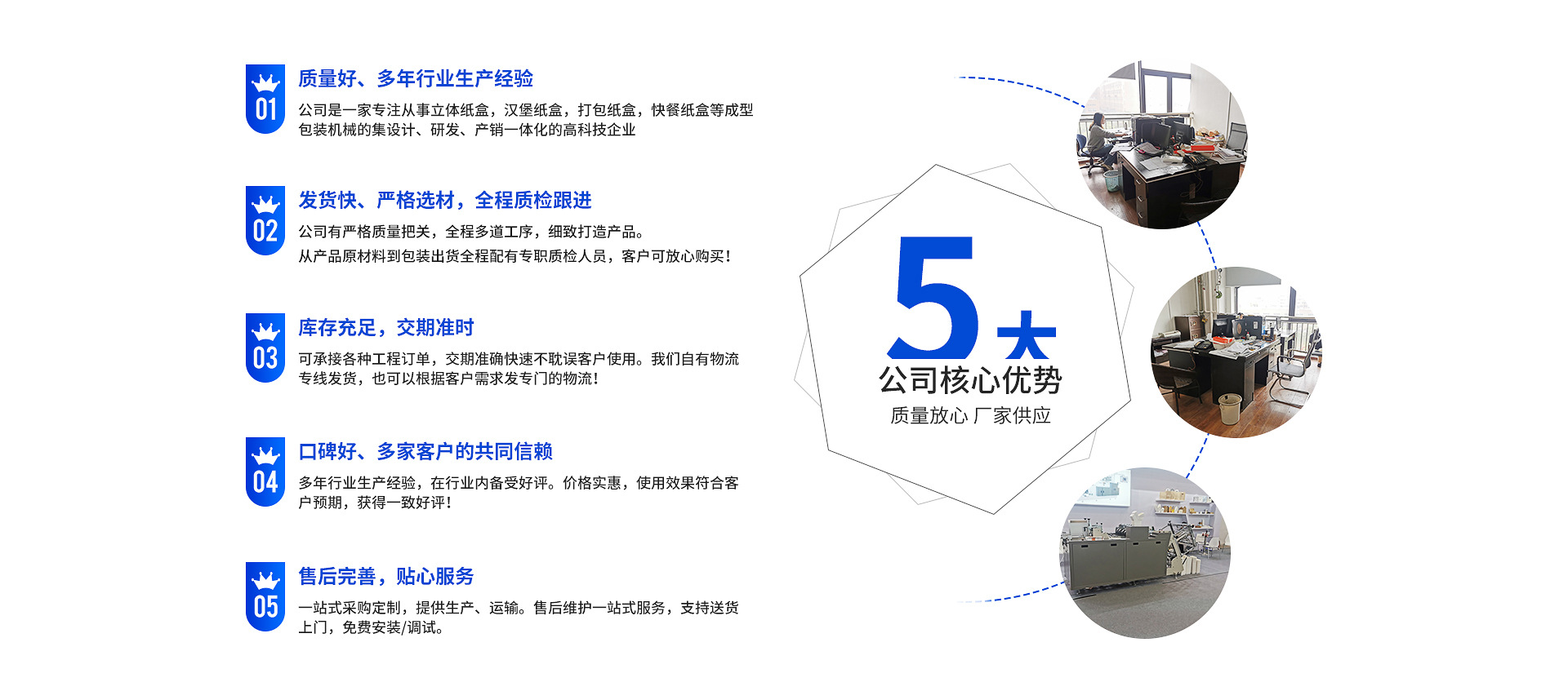 瑞安市中法機(jī)械有限公司是一家從事立體紙盒機(jī),漢堡紙盒機(jī),打包紙盒機(jī),快餐紙盒機(jī)等成型包裝機(jī)械的設(shè)計(jì)、研發(fā)、產(chǎn)銷一體化的高科技企業(yè)。公司有現(xiàn)代化的管理體系和完善的售后服務(wù)體系;有一支具有充滿青春活力的精銳研發(fā)團(tuán)隊(duì)!自成立以來(lái),中法公司堅(jiān)守“誠(chéng)信、學(xué)習(xí)、發(fā)展”的企業(yè)發(fā)展理念,堅(jiān)持“以誠(chéng)信為道、以質(zhì)優(yōu)取勝”的經(jīng)營(yíng)原則,在市場(chǎng)競(jìng)爭(zhēng)中取得了良好的社會(huì)和經(jīng)濟(jì)效益!